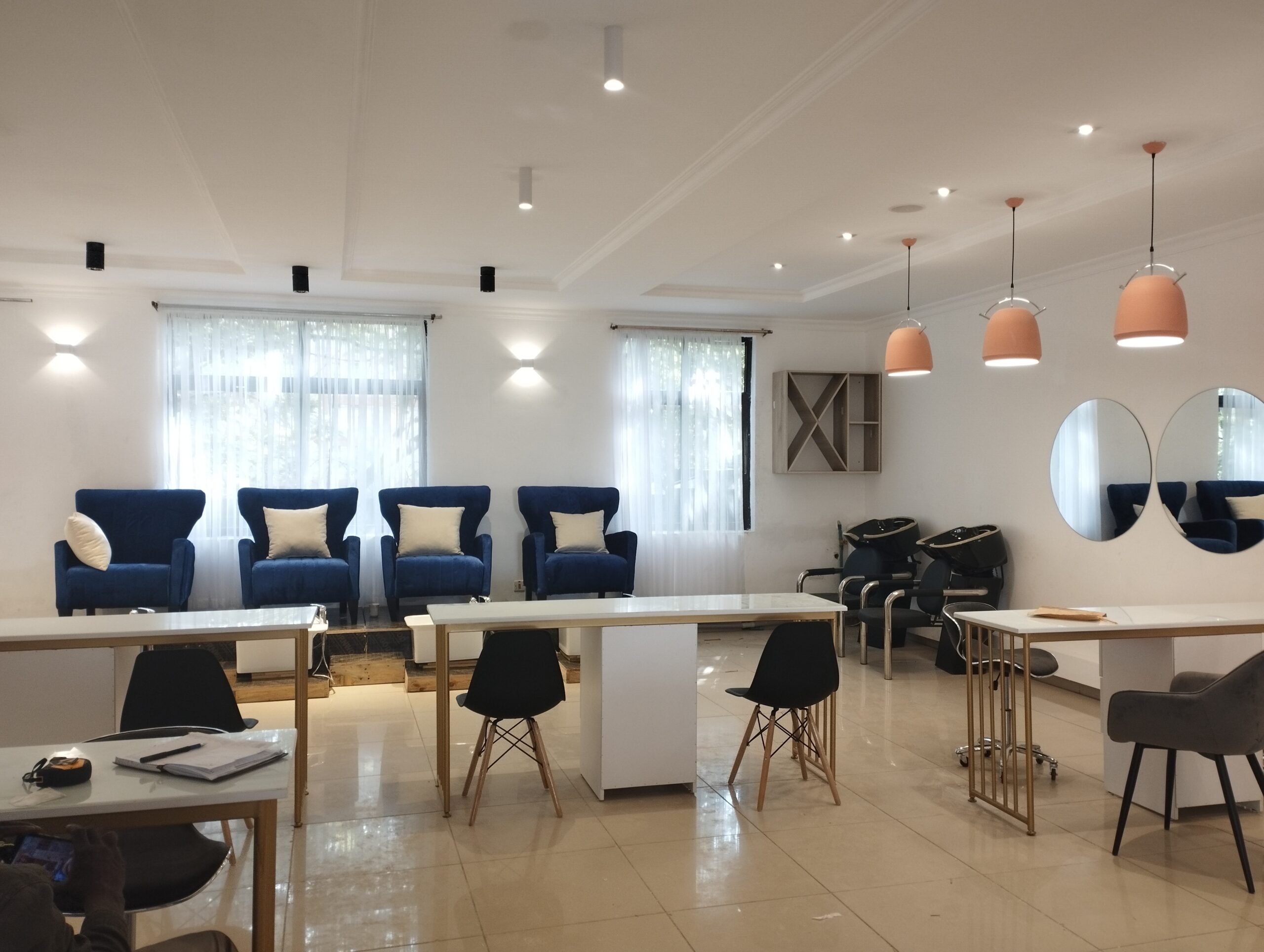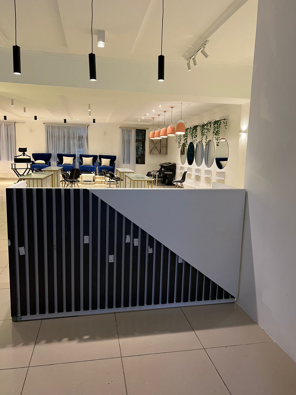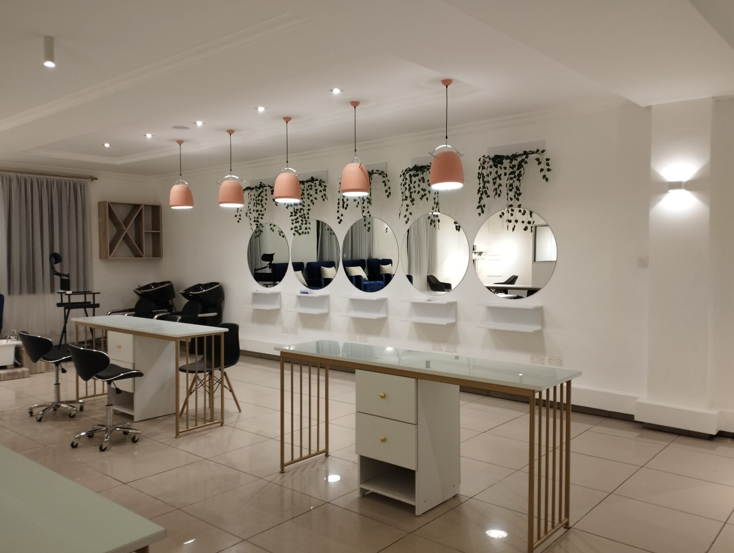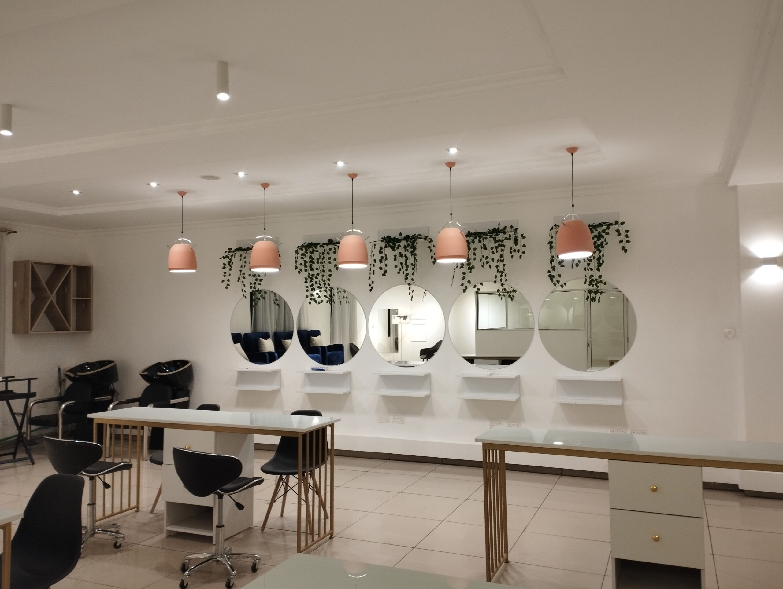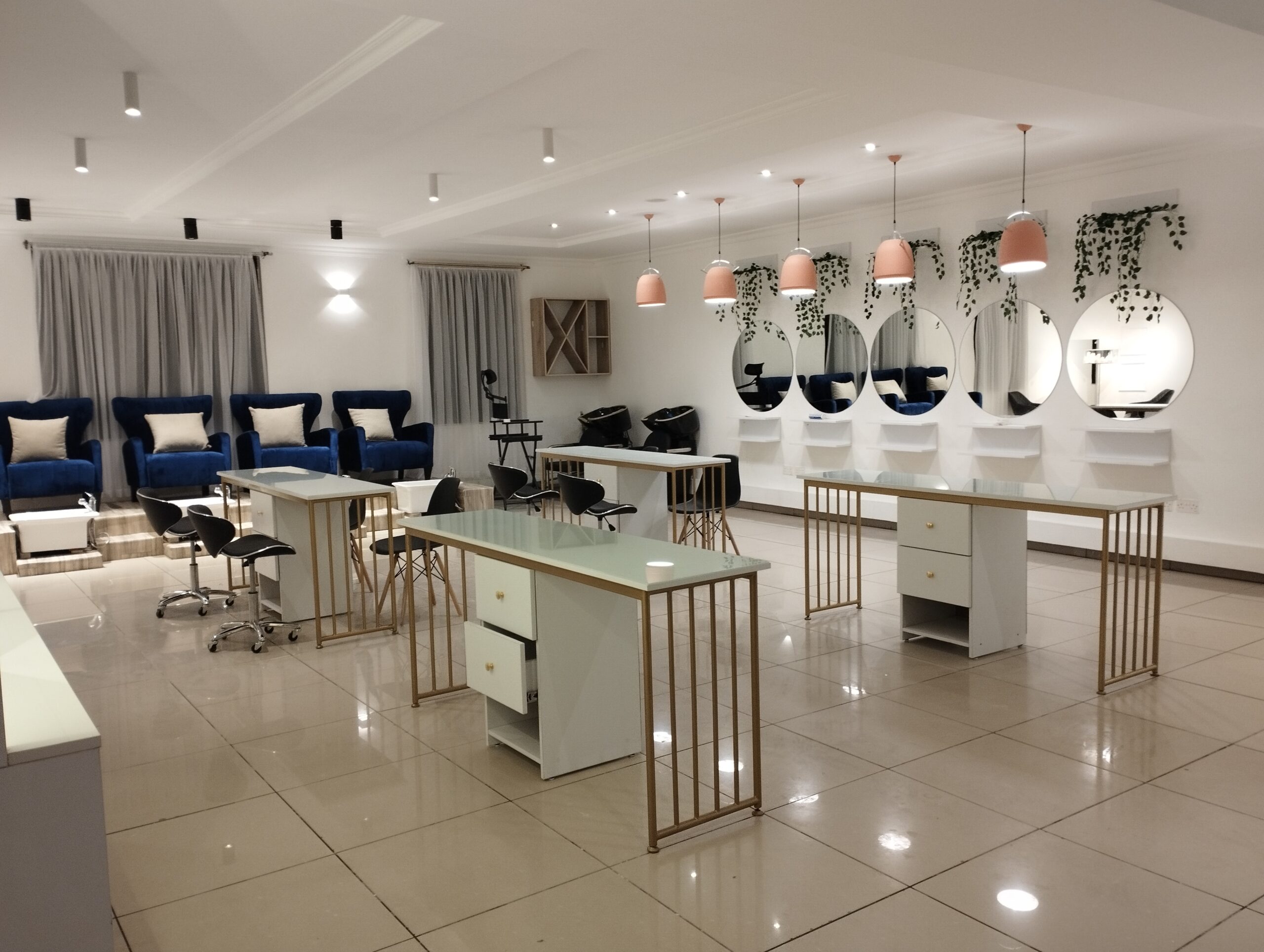 This Contemporary Salon Interior was designed as an open-plan space integrating manicure, pedicure and men’s grooming zones within one elegant layout. The design features polished stone surfaces, sleek metallic accents, and refined finishes that exude luxury and cleanliness. Each zone flows effortlessly, balancing comfort and efficiency. A modern salon concept crafted to elevate the grooming experience in today’s urban African setting.